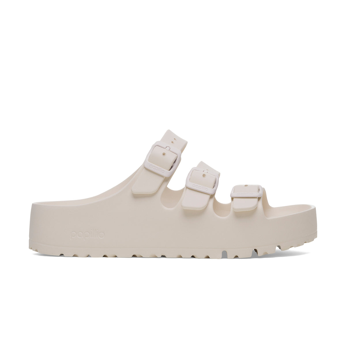 The Birkenstock Florida is the ideal sandal for anyone who spends a lot of time on their feet. This three-strap sandal offers good grip and maximum comfort. The new platform flex outsole has a wider heel section for increased stability and ideal weight distribution. The updated design with horizontal grooves in the front part improves flexibility and the rolling motion. Modeled on the cork original, this sandal is made from especially light and highly flexible EVA. This high-quality, odor-neutral synthetic material which has been tested for harmful substances is shock-absorbent, water-resistant, and skin-friendly. It is therefore perfect for wearing on the beach, in the garden, or in wellness and spa areas.