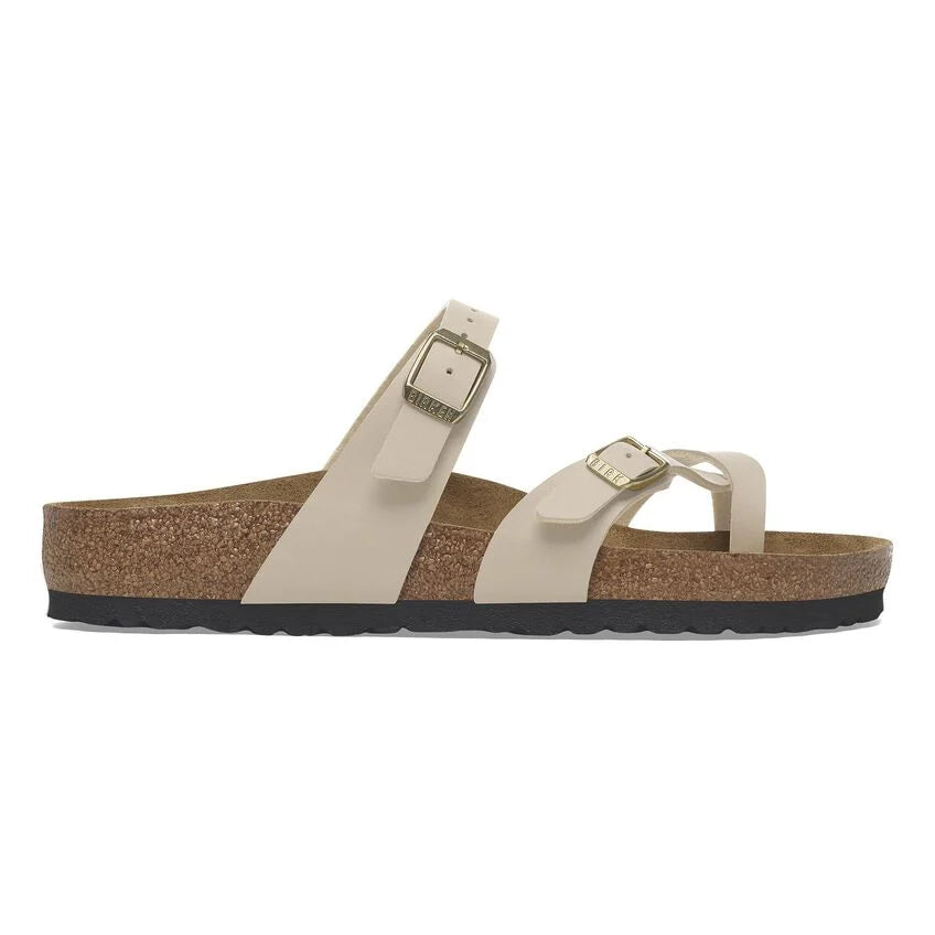 The Birkenstock Mayari thong sandal is a distinctive classic model with a toe loop and cross strap. The combination of anatomically shaped footbed and secure adjustable instep strap makes Mayari extremely wearable in a wide range of situations. Classic support and adjustability, designed beautifully.